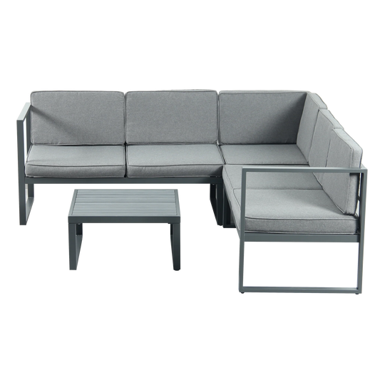 Chester Grey Modern Metal Garden Furniture 5 Seat Corner Sofa and Coffee Table Patio Set