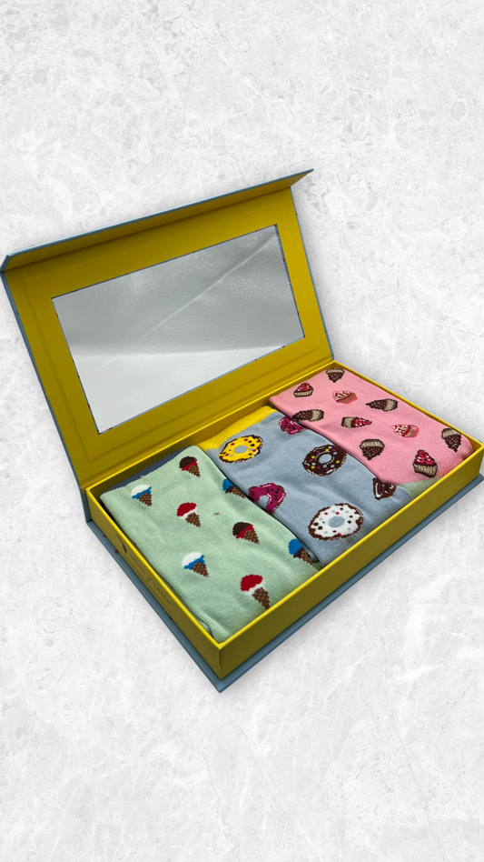 House of Tweed Ladies Luxury Bamboo Socks (3-Pair Gift Set) Style CupCake