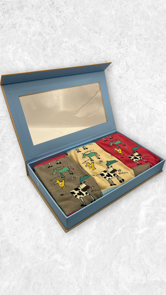 House of Tweed Ladies Luxury Bamboo Socks (3-Pair Gift Set) Style Farmyard