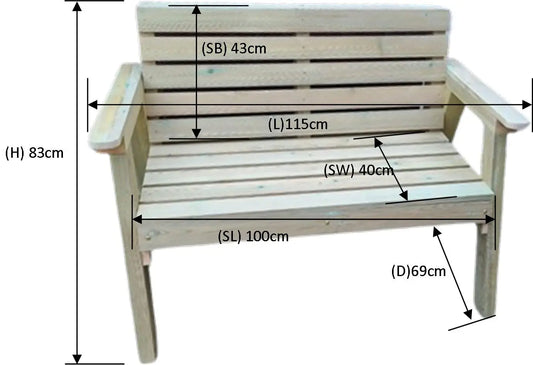 Wooden Bench Garden Bench With Back (2 SEATER) 120cm x 51cm x 76cm